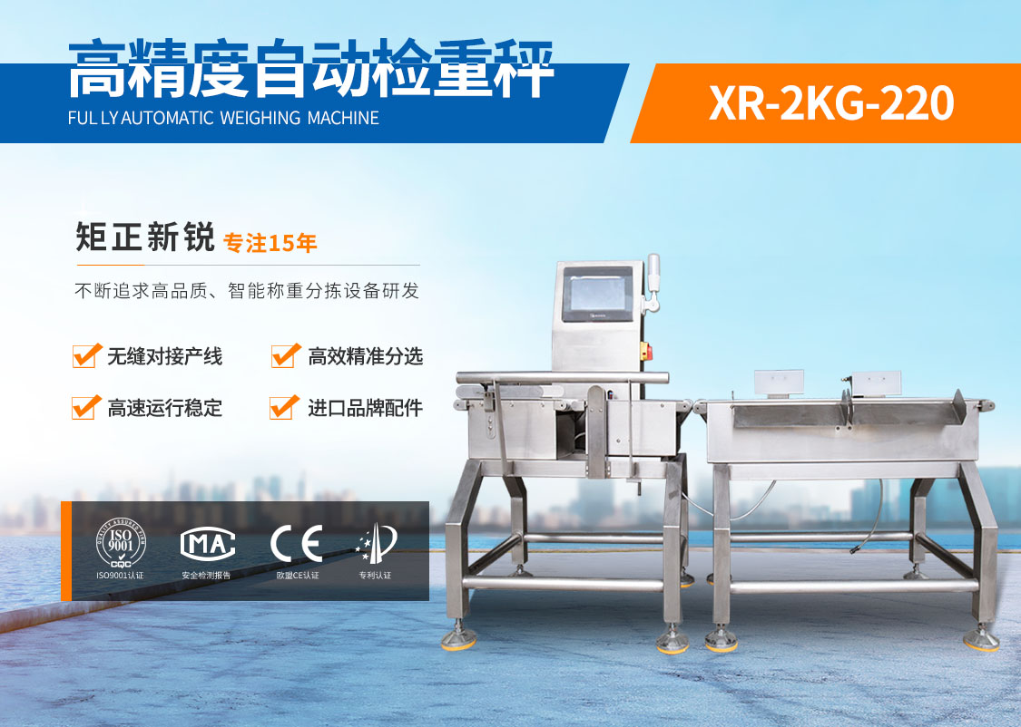 自動檢重秤是生產(chǎn)線上的一種動態(tài)稱重設(shè)備,它能對每件產(chǎn)品100%的重量進行檢測,并按重量將產(chǎn)品分成兩組或多組。